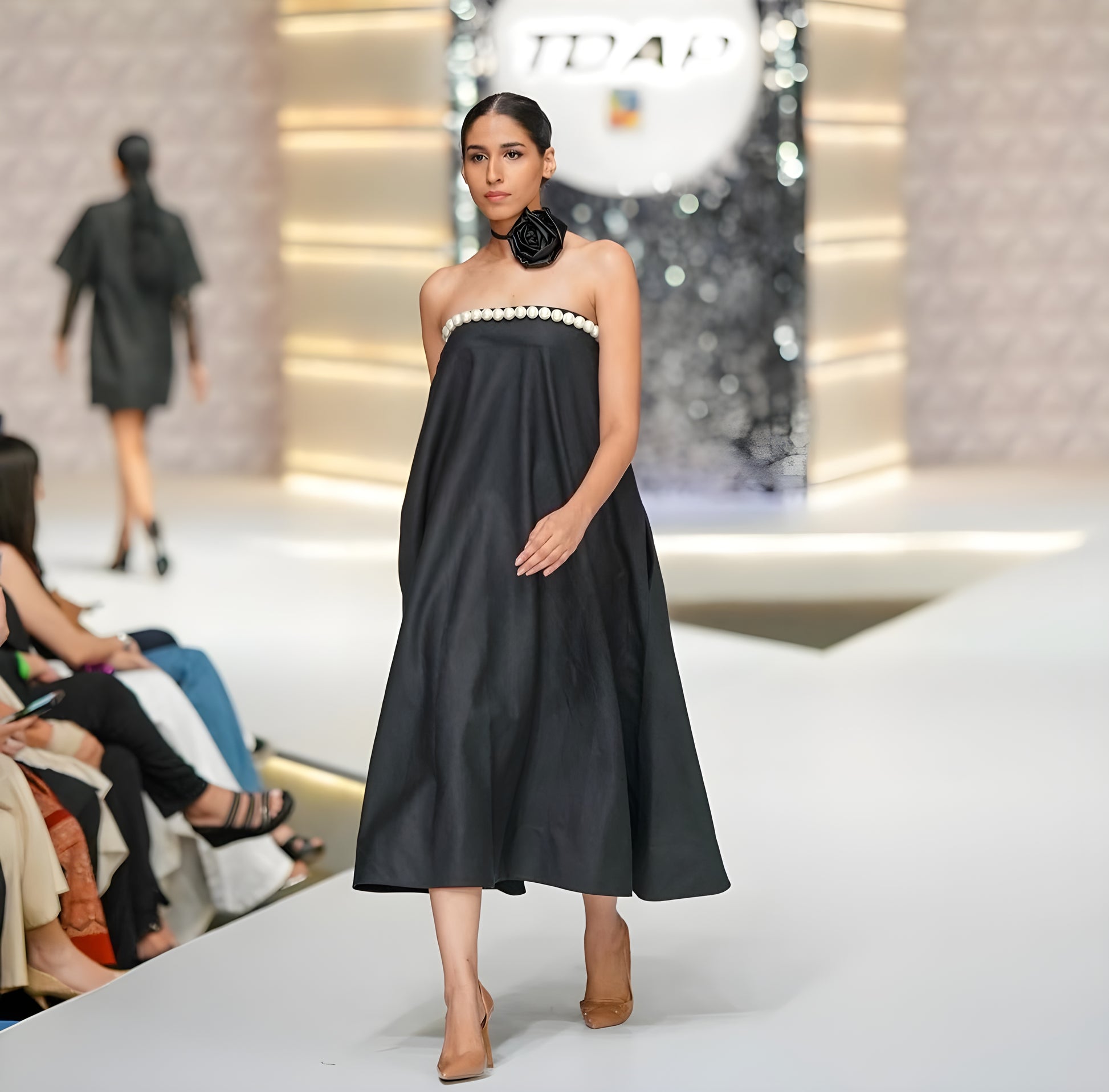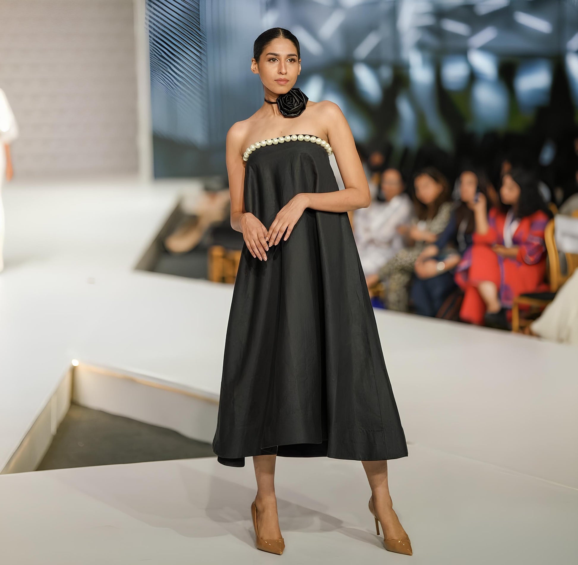 Make an elegant statement with this sophisticated black co-ord set, crafted from luxurious suiting fabric that combines structure with effortless flow. The design features a stone-embellished neckline that adds refined sparkle, while handmade floral appliques on the pockets introduce a soft, feminine contrast.